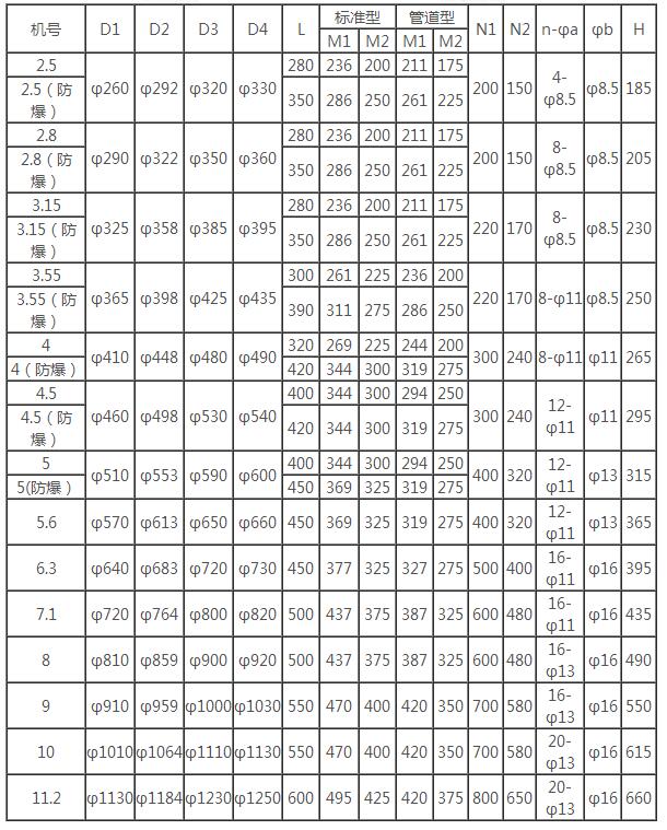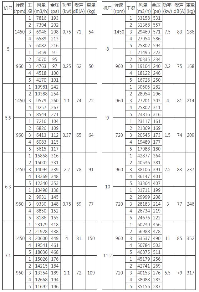 二、CDZ型低噪聲軸流風機性能參數(shù)表